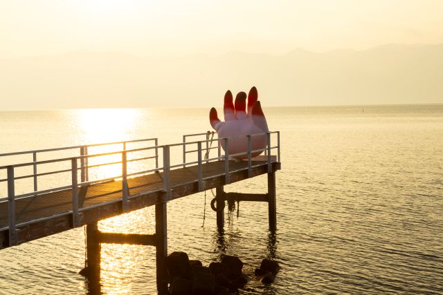⽇本唯⼀の淡⽔湖の有⼈島である沖島全体に、作品が点在。⾃然と共⽣する暮らしの中に、アートが溶け込みます。鑑賞パスポートなしで⼊場できます。