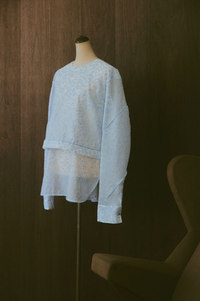 袖を通す人が内面から輝けるよう、本質的な価値を追求した服づくりを真摯に行う東京発のブランドです。過去のアーカイブから好評だったフラワープリントのブラウスを、今回特別に「阪急うめだ本店」限定カラーのブルーで復刻。