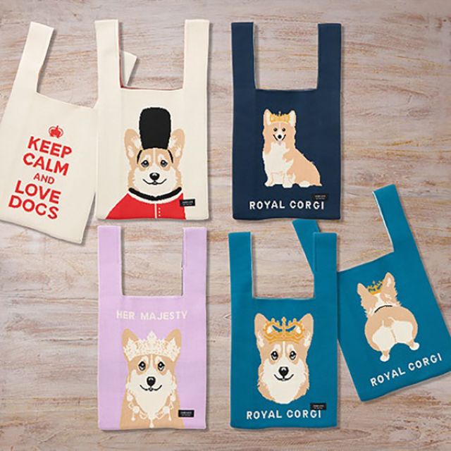 ジュビリー「ニットトートバッグ 英国ロイヤルコーギー各種」中国製(各3,850円)※PART2のみ出店 -