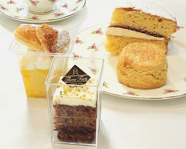 スリーティアーズ「トリプルバタースコーン」(540円)、「ヴィクトリア・サンドイッチ」(843円)、「レモンクリームパイ」(864円)<各日50点限り>、「キャロットケーキ」(843円) ※PART1のみ出店