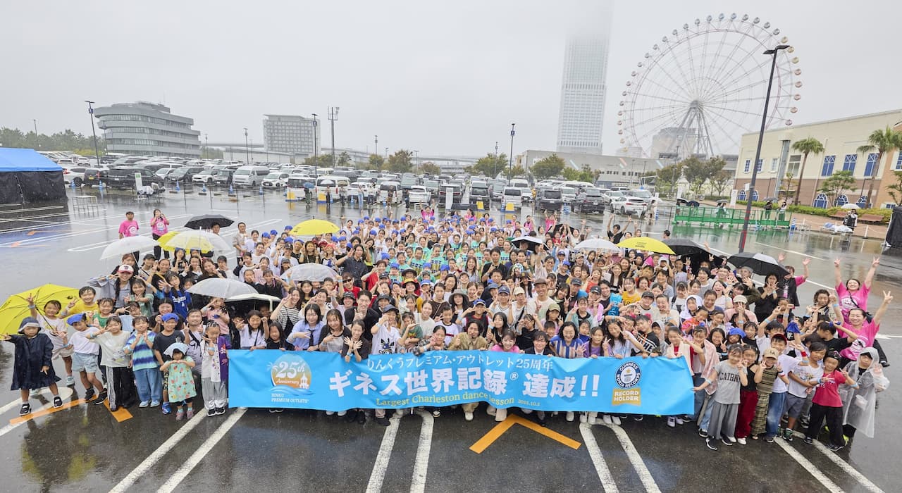 開業25周年を記念して開催された特別イベント「りんくう25周年ギネス世界記録 TM チャレンジプロジェクト」にて、世界的ダンサーのTAKAHIRO氏が総勢296名の参加者と挑戦した「最大のチャールストンダンスレッスン(Largest Charleston dance lesson)」が、ギネス世界記録を達成。これを記念して「チャールストンダンス」のキーワードを伝えると、25周年記念オリジナルステッカーがもらえます。