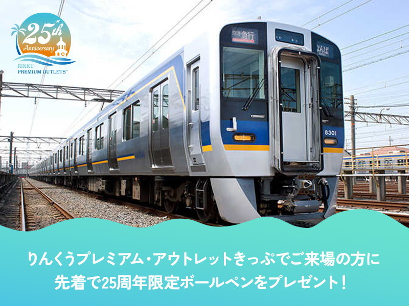 南海電鉄を利用してお得にショッピングが楽しめる「りんくうプレミアム・アウトレット25周年記念ノベルティ付き特別きっぷ」を発売します。