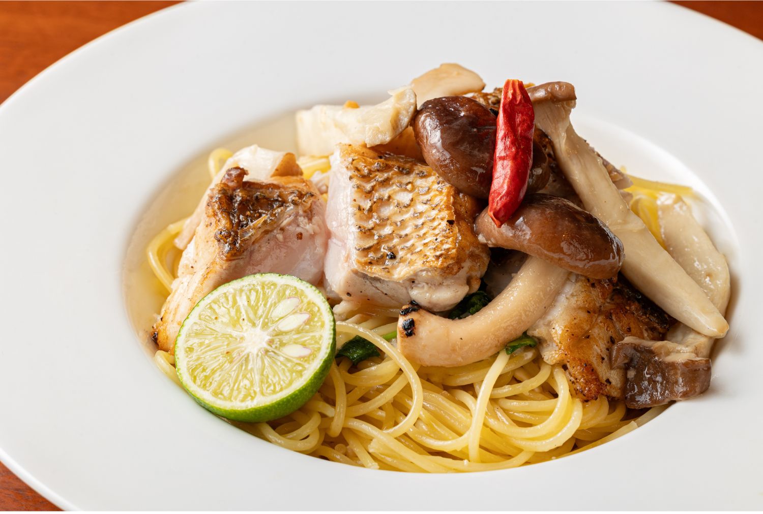 【スパッカ アルバータ】「熊本天草の天然真鯛と松茸のペペロンチーノ 酢橘の薫り」(2,200円)※ディナー限定 -