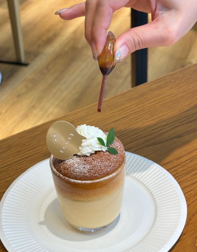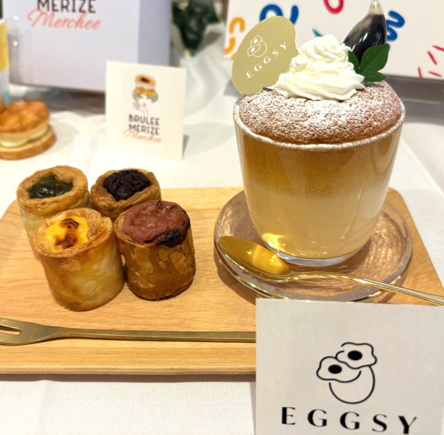 “たまご”をテーマにした素朴でクラシカルなスイーツショップ「エグジー」。「平飼いカケッコたまご」(岡山県赤磐市の養鶏場)を使用しています。ふんわりカステラと濃厚プリンが二層になった「カステラぷりん」は、付属のカラメルソースを注いで香ばしさをプラス。「プティフラン」は、サクサクのパイ生地の中に濃厚カスタードを包んだ、ひとくちサイズのスイーツです。