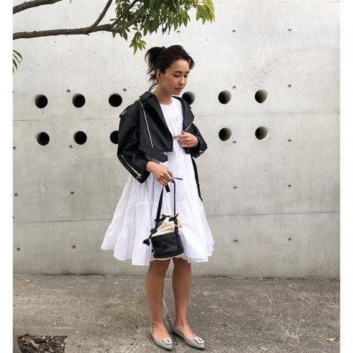 真っ白なワンピースは、みんなの憧れですよね。でもかわいくなりすぎないか心配……という方は、アウターや小物をシックに黒でまとめると◎。モノトーンを意識すると簡単にスイートとシックのバランスをとることができます。