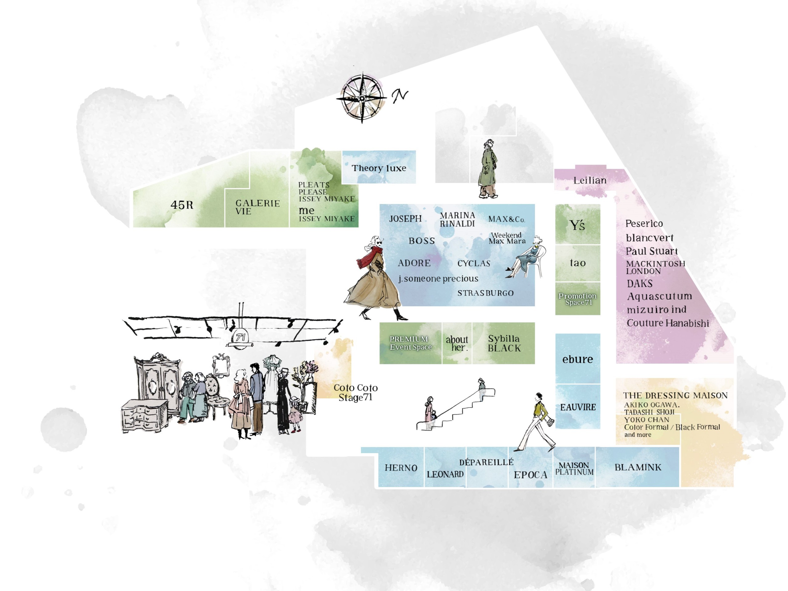 売場には、本物志向・品格・現代性をキーワードにした34ブランドがラインナップ。デザイナーのこだわりが詰まった日本のブランドやインポート商品など、品格と現代性を併せ持つ上質なアイテムばかりです。