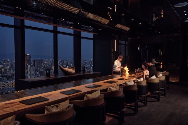 日本各地から厳選した旬の食材を、職人の巧みな技で一皿ずつ丁寧に仕上げる鉄板焼「馬藺」。クリスマス期間には、黒アワビや伊勢海老、黒毛和牛フィレ肉など、贅を尽くしたコースがお目見え。ライブクッキングならではの臨場感もお楽しみ。