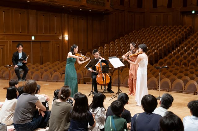 大阪が世界に誇る素晴らしい音響の音楽ホール・住友生命いずみホールの舞台上に席を設け、演奏者の間近で演奏を聴き、室内楽の親密感を感じられることが毎回好評のイベントです。