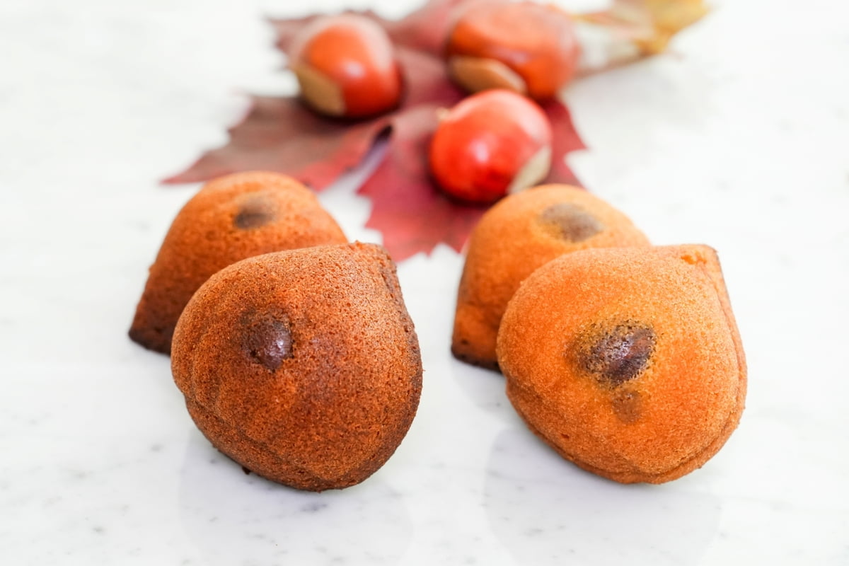 「マロンケーキ(焦がしマロン/キャラメル)」(378円/単品、1,780円/4個入り) -