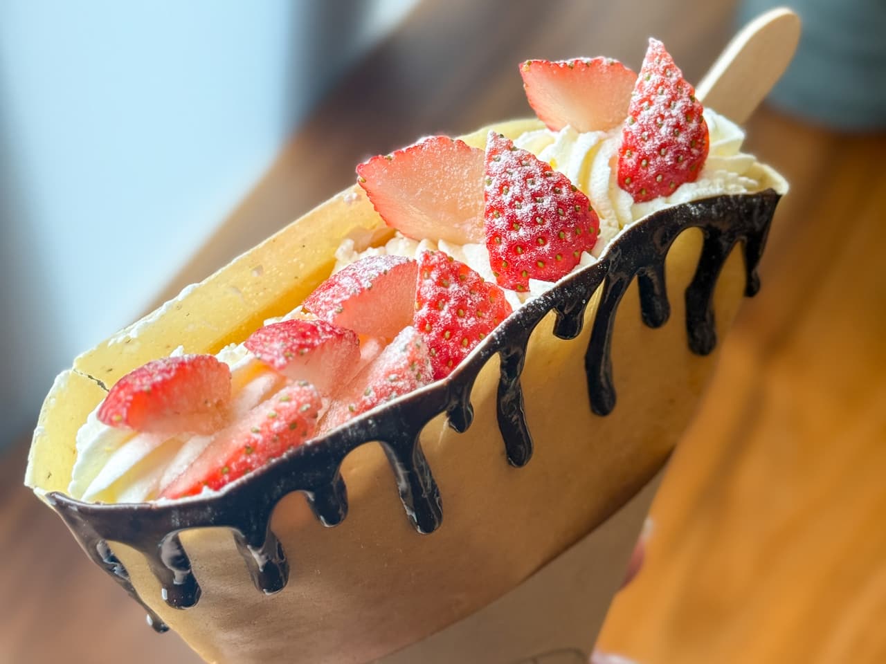 クレープといえばもちもち食感を思い浮かべる方も多いはず。こちらのクレープは表面が“パリッと軽い”のが特徴で、ほかではなかなか出会えない新食感!