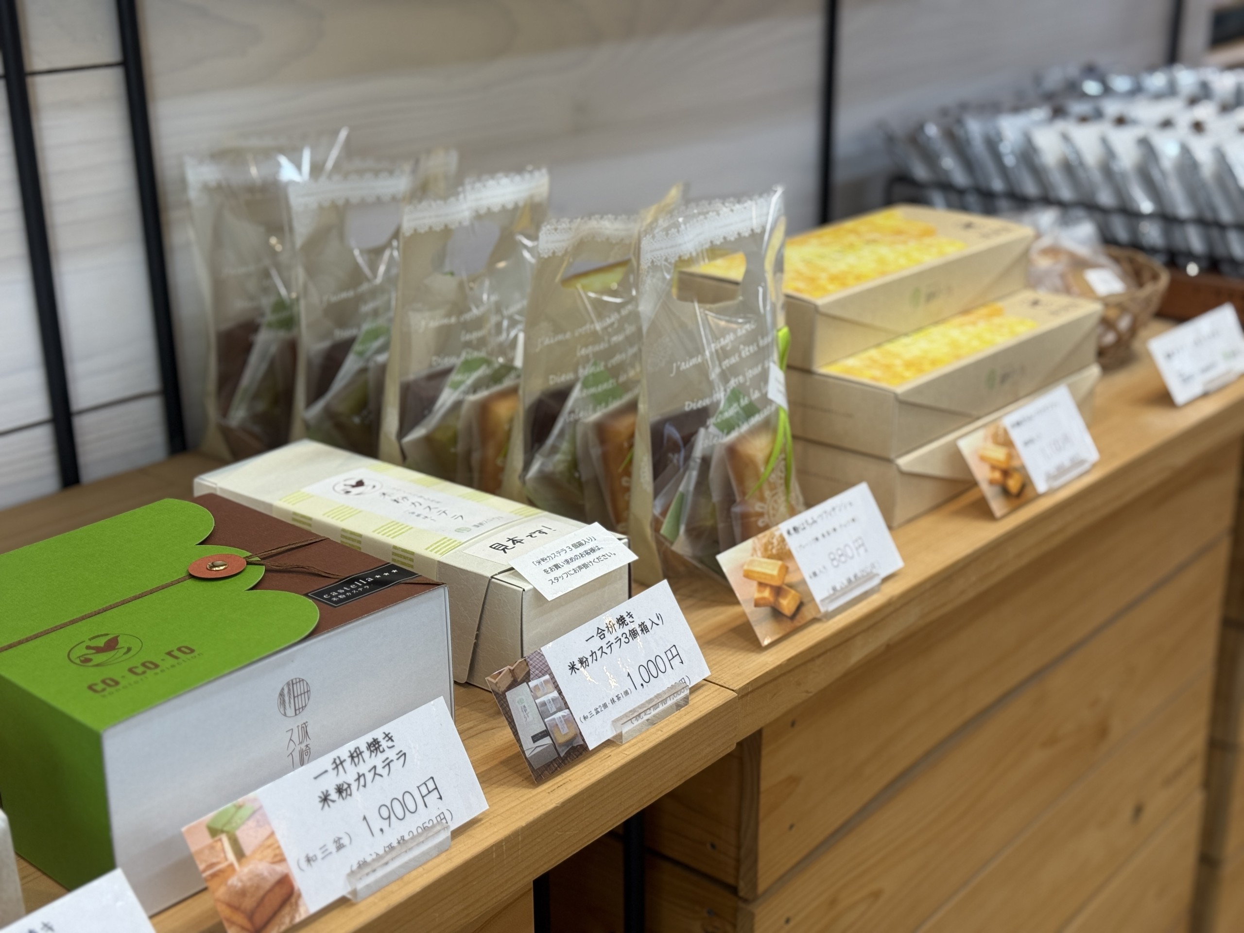 今回は、物販コーナーを併設したカフェ「城崎スイーツ本店」にお邪魔しました。城崎温泉に展開する系列店の中でも、人気の米粉バウムクーヘンなどのお土産ものが豊富にそろっているのが特長だそう。自家焙煎コーヒーやジェラート、パフェ、わらびもちなどを提供しています。