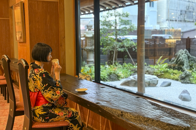 「城崎ジェラートカフェ Chaya」、「城崎スイーツ本店」、「城崎珈琲 みはらしテラスカフェ」の中から1軒選んでゆったり過ごせる「JTBお休み処」のサービスも。姉妹店である「城崎珈琲」のブレンドコーヒー1杯が事前申込みなしで利用できます。