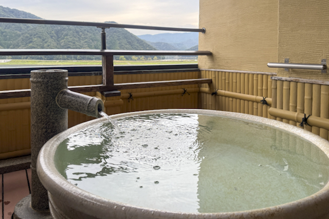 他の宿泊客に気を遣わず、自分たちだけの空間で日頃の疲れを癒やせるのが貸切露天風呂の魅力。予約は当日先着順のため、早めにチェックインするのがベターです!