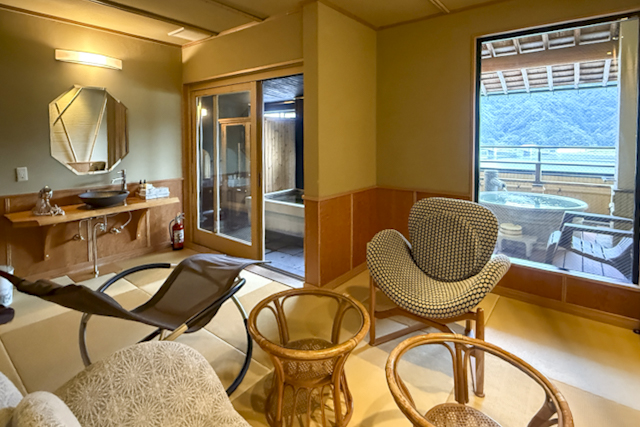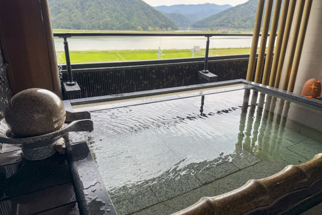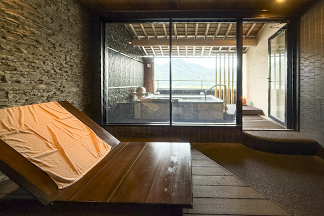 プライベートサウナが付いた「夢のかよひ路(※1)」と、段差が少なく子ども連れも利用しやすい「星のおさんぽ(※2)」の2種類がスタンバイ。どちらも円山川や城崎大橋を一望できる抜群のロケーションです。友人同士やカップルには、サウナ付きが人気だそう。