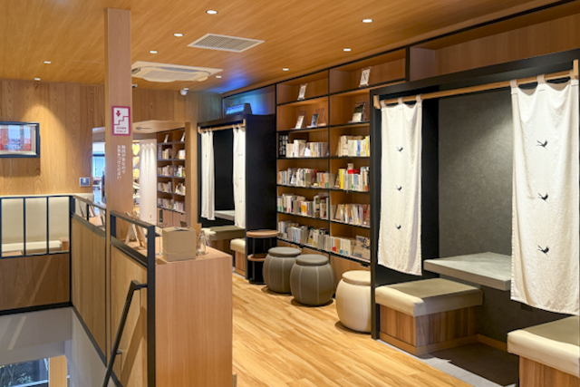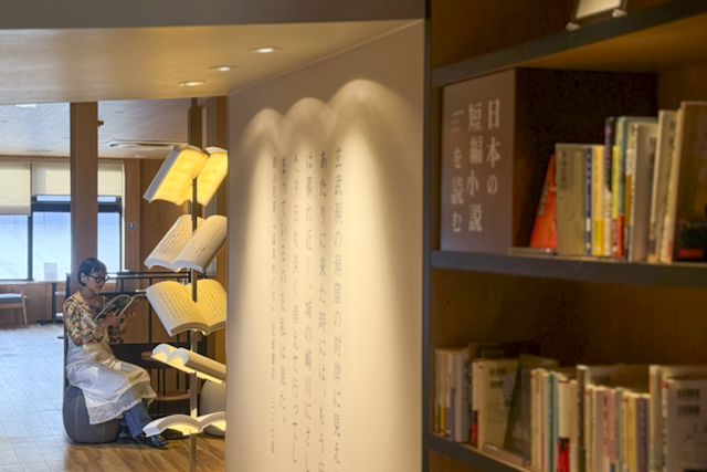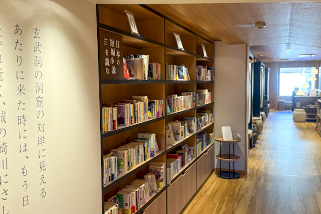 湯めぐりの合間はもちろん、家族や友人の入浴待ちにもぴったり。「5分で読めるもの」「10分で読めるもの」など、所要時間別に短編小説を選べるブックタイマーコーナーも設置され、限られた時間でも気軽に本を手に取れる工夫がされています。