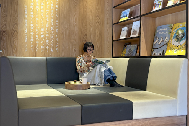 文学作品の文章の一部をアート感覚で壁に描いたり、本をモチーフにしたオブジェを取り入れたり、すてきな内装にも心が踊りました。