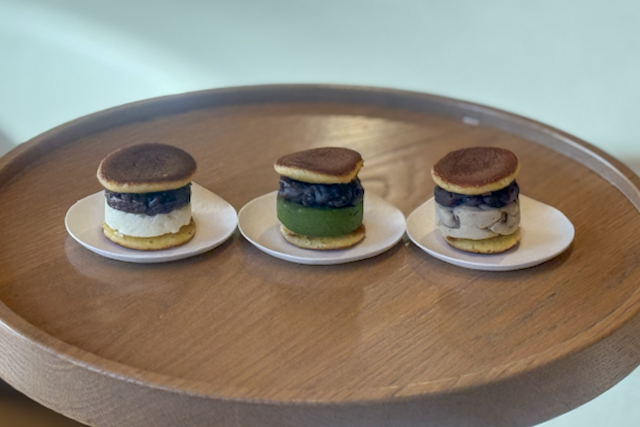 いちおしは、食べ歩きにもおすすめの生バターどら焼き。口当たりがまろやかなバタークリームを、麹の香りがほのかに漂うしっとりとした生地でサンドしています。季節限定フレーバーもあるので、その時期だけの味わいと出合う楽しみも。湯上がり後の体がポカポカ温まる、生姜を効かせた自家製レモネードも好評です。