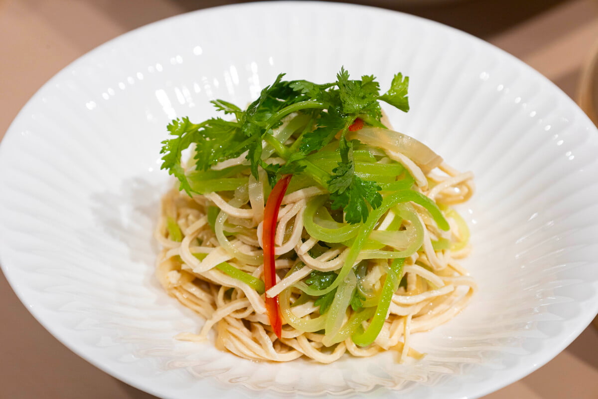 大人気の「大根パイ」は、生地がサクサク。中の細切り大根は熱々でトロリとした食感が特徴で、いくらでも食べられそう。「千切り三種の中華和え」は湯葉と白きくらげ、茎レタスの食感がポイントです。