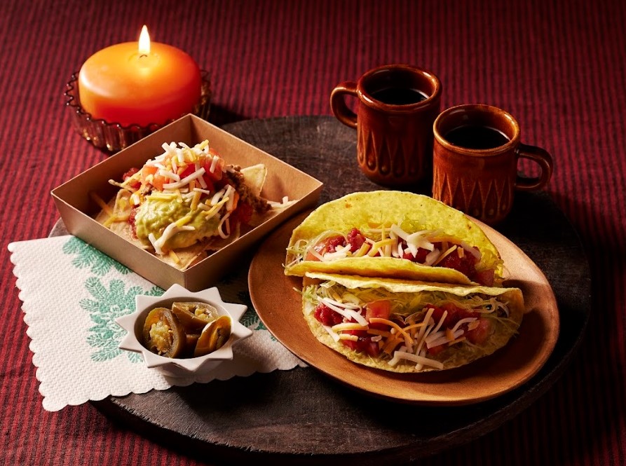 ドン エンリコ(左)「ナチョス」(605円)、(右)「タコス」(1個/495円)、「トッピング」(ハラペーニョ)(110円)