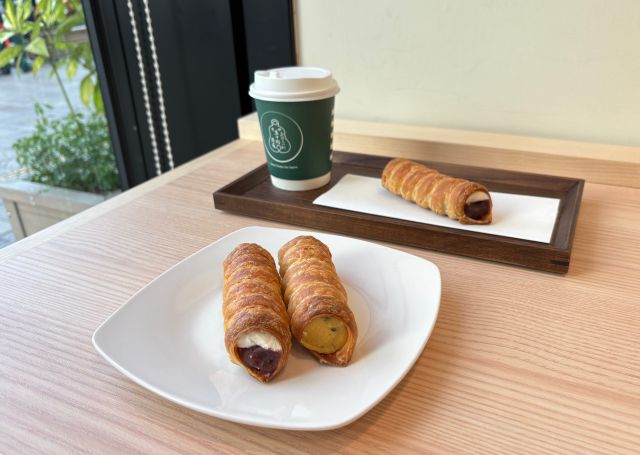 もう一つの人気は「お菓子とドリンクのセット」。北海道産の粒あんと和三盆クリームを詰めた 「あずきコルネ 和三盆クリーム」、秋限定の 「さつま芋コルネ」 から選べ、好みのドリンクとあわせて楽しめます。