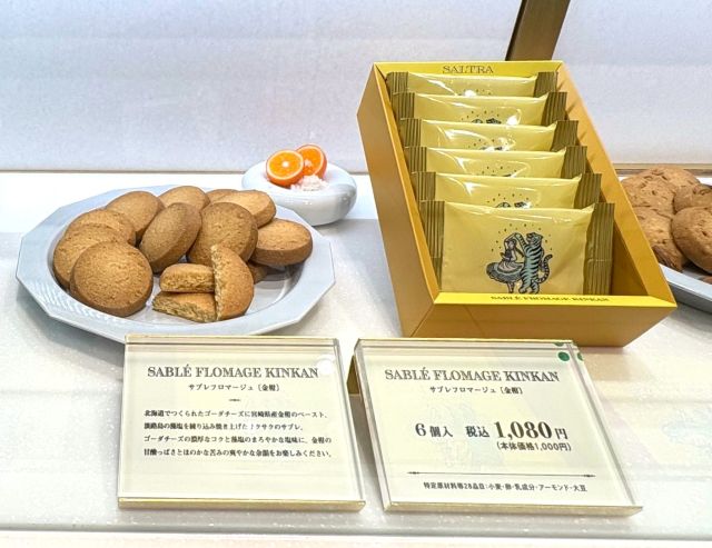ほかにも金柑とアーモンドの2種類の「サブレフロマージュ」や、グラスフェッドバターに淡路島の藻塩を加えてしっとり焼き上げた生地に、塩チョコレートをそそいだ焼き菓子「ティグレ」もおすすめ。