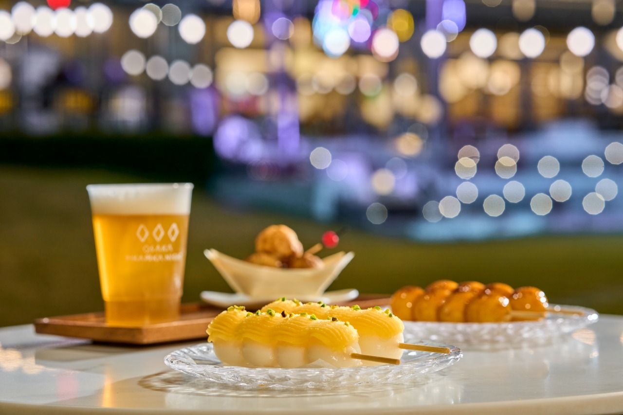 季節のデザートを味わえる屋台も登場。第一弾として、「みたらしだんご~冷やしあめ餡~」と「ミックスジュース餡だんご」が提供されます。また、クラフトビール醸造所「上方ビール」が手がけるオリジナルクラフトビールもスタンバイしています。