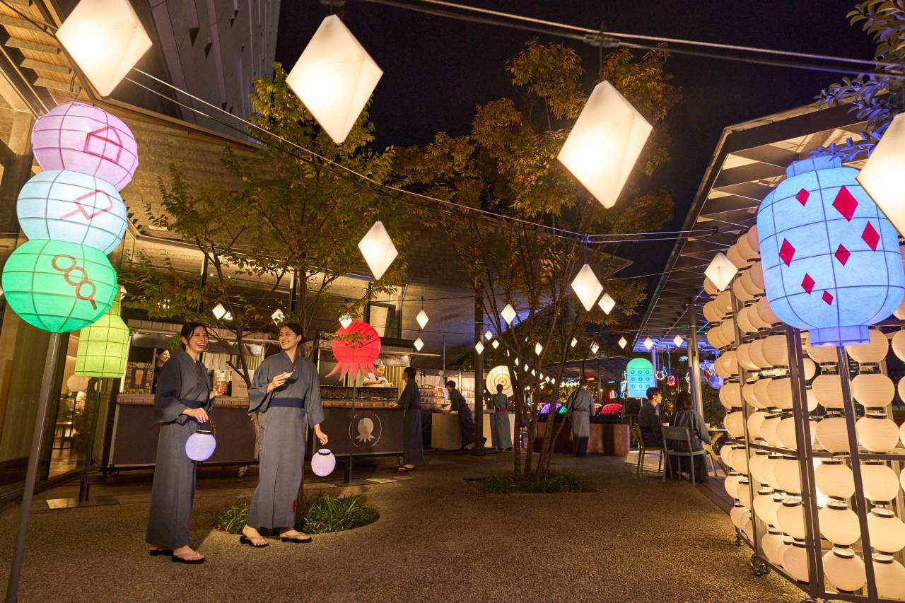 提灯も、横丁気分を味わうアイテムのひとつ。柔らかな灯りが横丁に溶け込み、滞在着の浴衣を着用して提灯を持ち歩くことで、気分が盛り上がりそう!