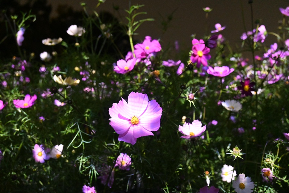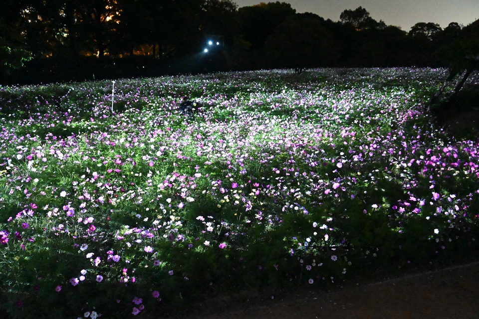 一見普通のコスモス畑ですが、変化するのは日没後。