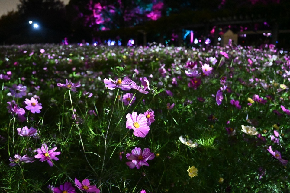 コスモスの光と音楽で彩られた幻想的な世界に、思わずうっとり。写真撮影にもピッタリです。