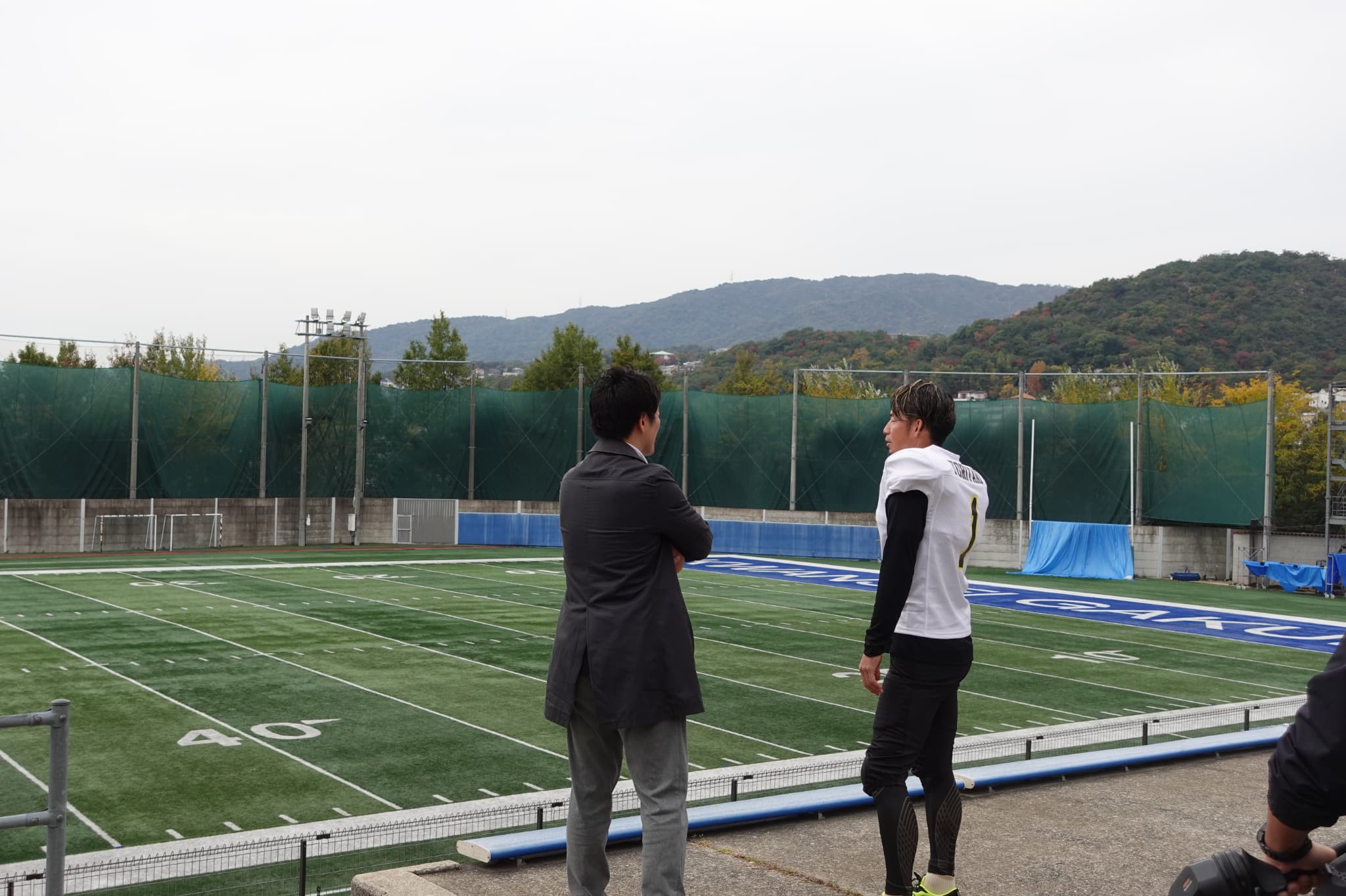 指南してくれたのは、関西学生リーグを1位通過し、甲子園ボウルへ進出を決めた強豪「関西学院大学ファイターズ」の星野秀太さん(4回生)・太吾さん(2回生)兄弟。ふたりそろってクォーターバックを担う、注目の若き司令塔たちです。