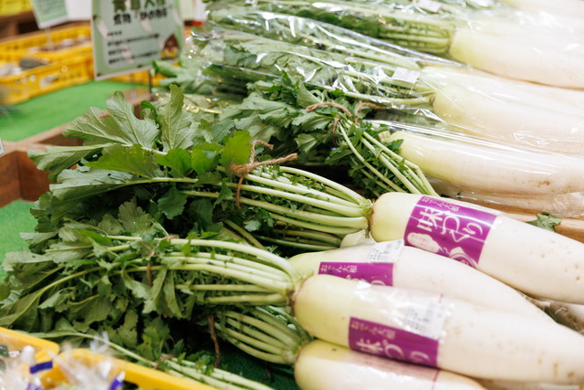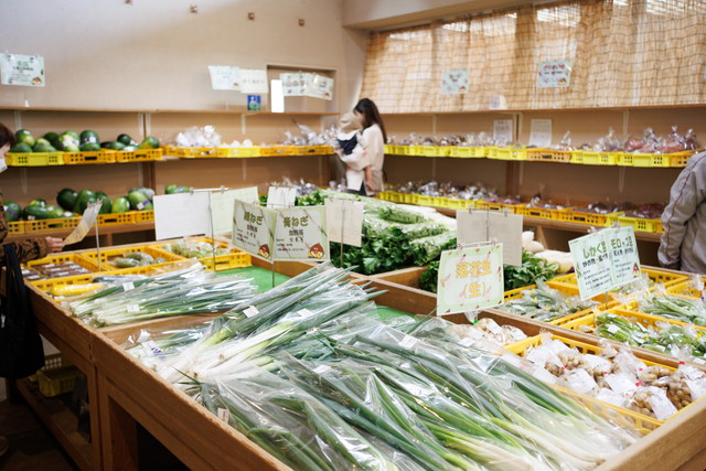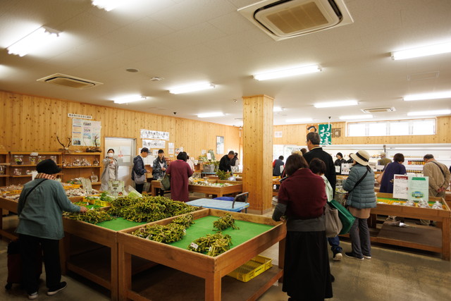 なかでも直売コーナーは必見! オープンから9時30分ごろにかけて、町内の農家さんが採れたばかりの農産物を運んできます。お鍋にぴったりな原木椎茸や大根に白ねぎ、ことこと煮込みたい里芋、ピリ辛をプラスしたいときの鷹の爪など、バリエーションの豊富さもうれしいポイントです。
