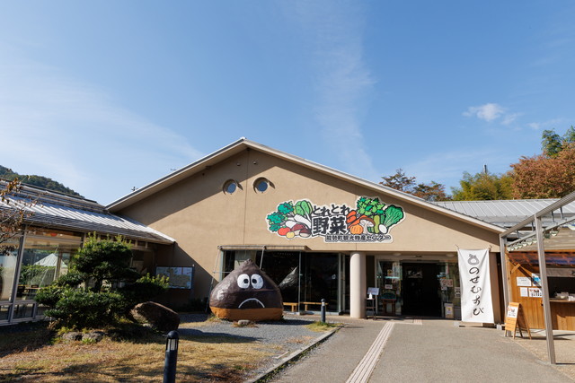 旅の最初に訪れておきたいのが「道の駅 能勢(くりの郷)」。残念ながら名物の栗や黒枝豆のシーズンは終わっていますが、おうちの食卓をおいしくぽかぽかにしてくれる旬野菜や加工品、スイーツ、おみやげなどがずらりと並びます。