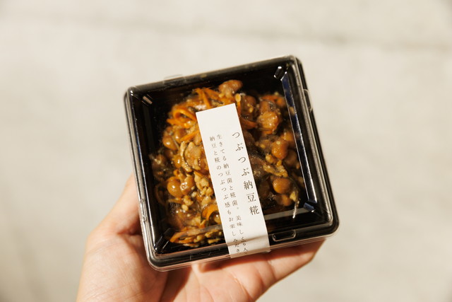 「孚」でも提供されている「つぶつぶ納豆糀」(150g/520円)。豊能町の納豆店から仕入れた納豆を使ったオリジナルのごはんのおともです。