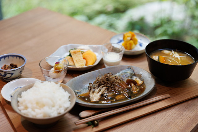 施設の1階には、数々の発酵料理を使った和食ランチが味わえる「孚(ふぅ)」がお待ちかね。おすすめの「発酵御膳」は季節替わりのメインを肉料理・魚料理から選べるほか、副菜やお味噌汁などにはそのときの旬の食材を使った一品が勢ぞろい。釜炊きのごはんは、席で釜からお茶碗によそってくれる心遣いもうれしいポイントです。