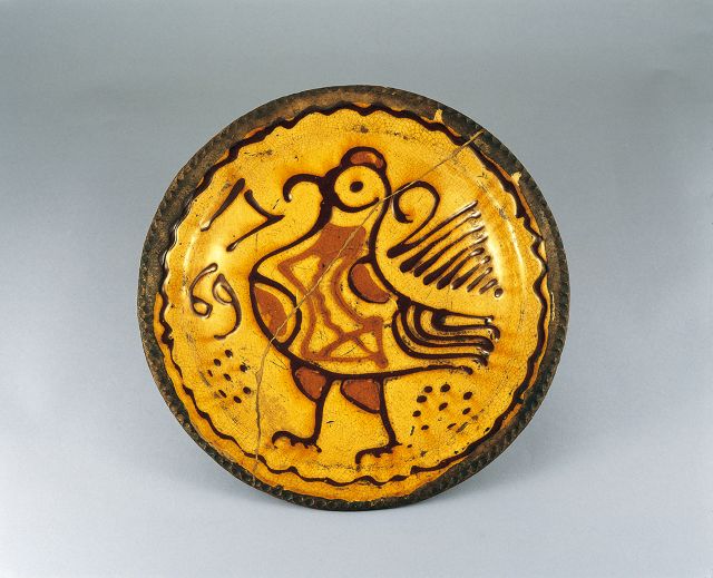 《イギリス スリップウェア鳥紋鉢》1769年(当館蔵)