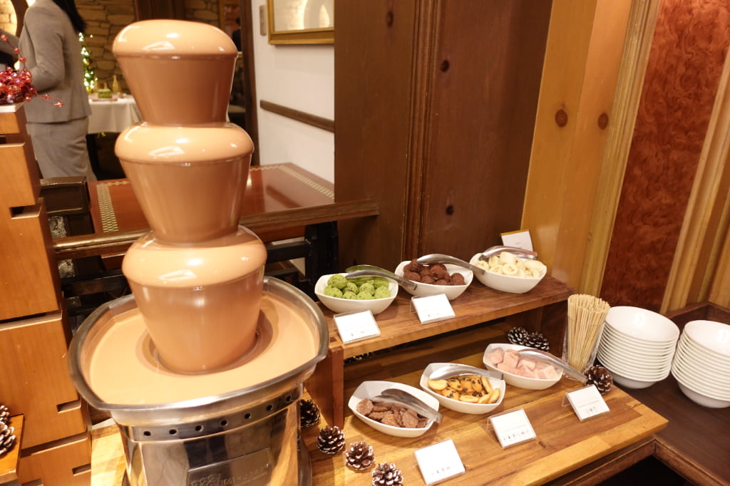 すっかりスイーツビュッフェの定番となったチョコレートファウンテン。一見、普通のチョコレートに見えますが、実はスパイスが香るミルクチョコレートです。