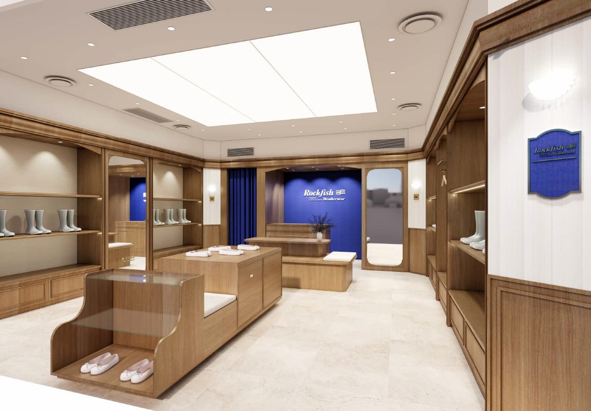 今回国内2店舗目となる「Rockfish Weatherwear」の常設店が、「HEP FIVE」1階にオープン。店内は、上品な華やかさと落ち着きをあわせ持つブリティッシュクラシックな空間に、モダンな感性をプラス。細部までこだわったインテリアにも気分が高まります。