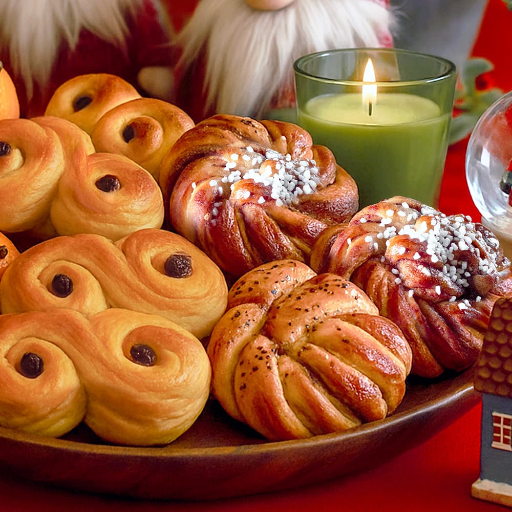 クリスマスならではのグルメも見逃せません。クリスマス時期にスウェーデンで作られる、ネコの尻尾を丸めたようなS字形にレーズンをのせた特徴的なシルエットのパン「ルッセカット」は、ホットワインとの相性も抜群なのだとか♡