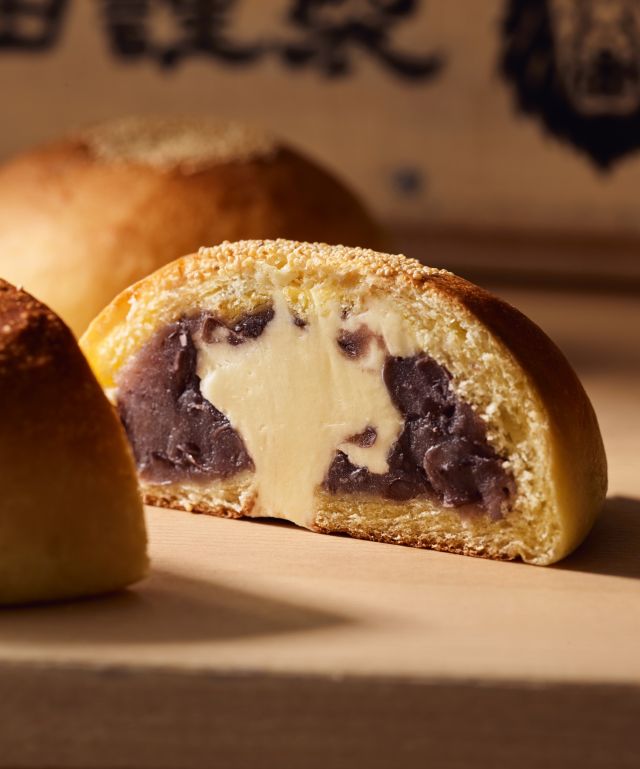 「あんバタパン」の特製餡子には、希少な北海道千歳産「えりも小豆」を厳選して使用。ていねいに炊き上げることで、豊かな風味と上品な口当たりを実現しました。その餡子をふくよかな生地に包み込み、さらに塩味をきかせたバタークリームを合わせることで、贅沢な一品に仕上げられています。