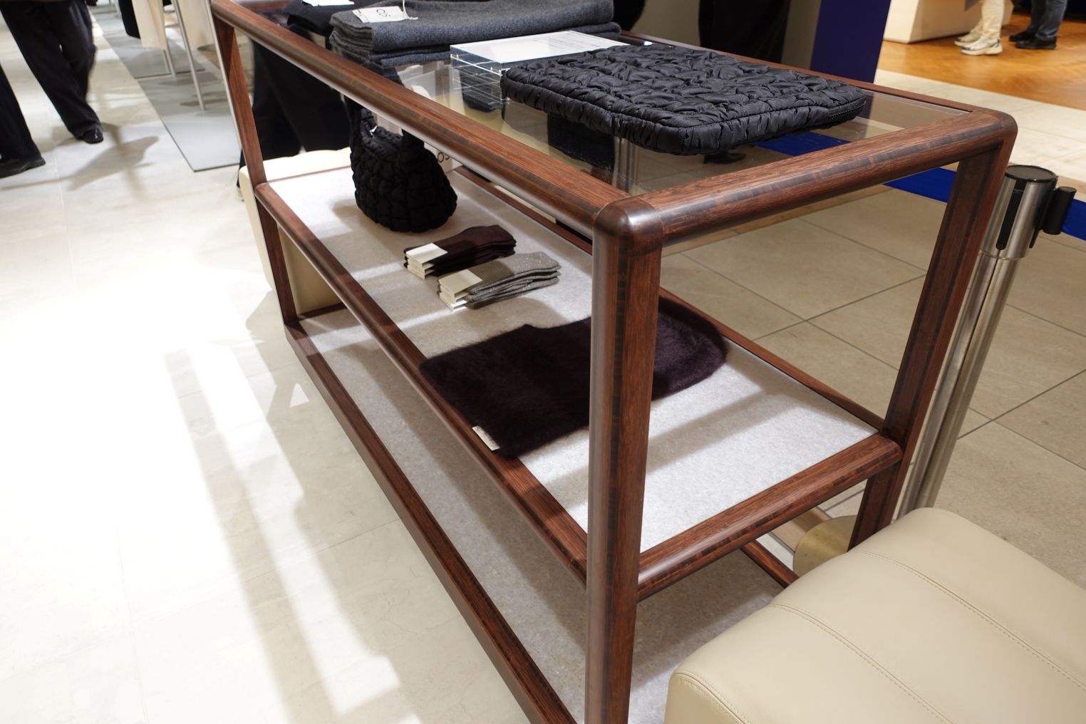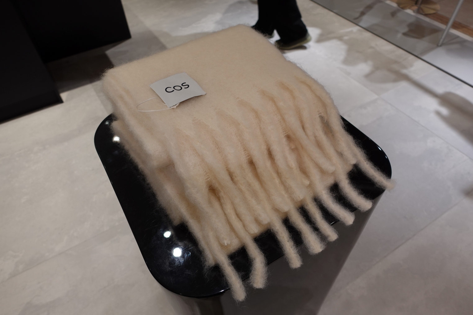 イタリア「Paper Factor」製の特注テーブルや竹素材のショーケースなど、空間全体にもこだわりが。COSらしい穏やかな色調とインテリアが、並ぶアイテムの魅力をさらに引き立てます。