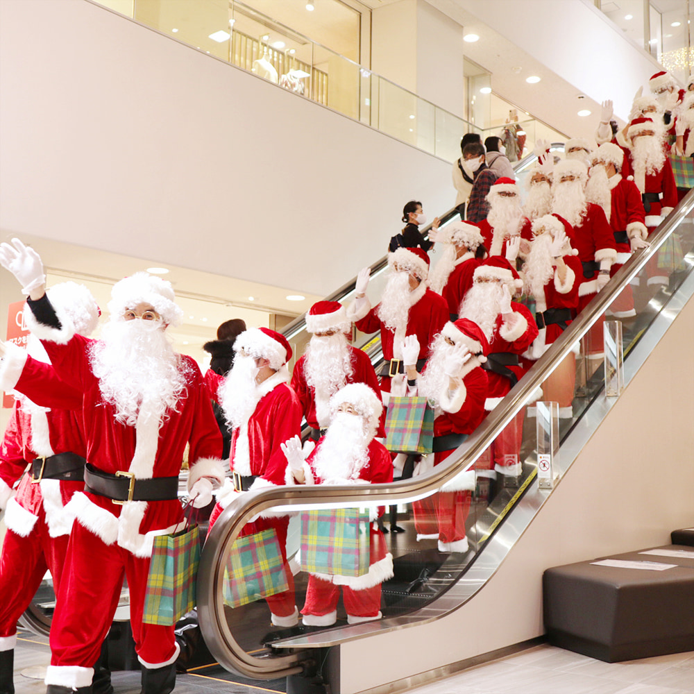 サンタ20人がエスカレーターを大行進!「ジェイアール京都伊勢丹」で体験する記憶に残るクリスマス