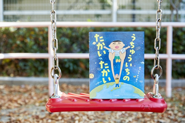 ホッシーナッキーさんのデビューのきっかけとなったのが、「書店員が選ぶ絵本新人賞」(読売新聞、中央公論新社主催)の特別賞。受賞作は、息子さんのひと言から生まれた『うちゅういちの たかいたかい』(中央公論新社)。父親が息子の“高い高い”に全力で応え続ける、ユーモアと愛情に満ちた一冊です。