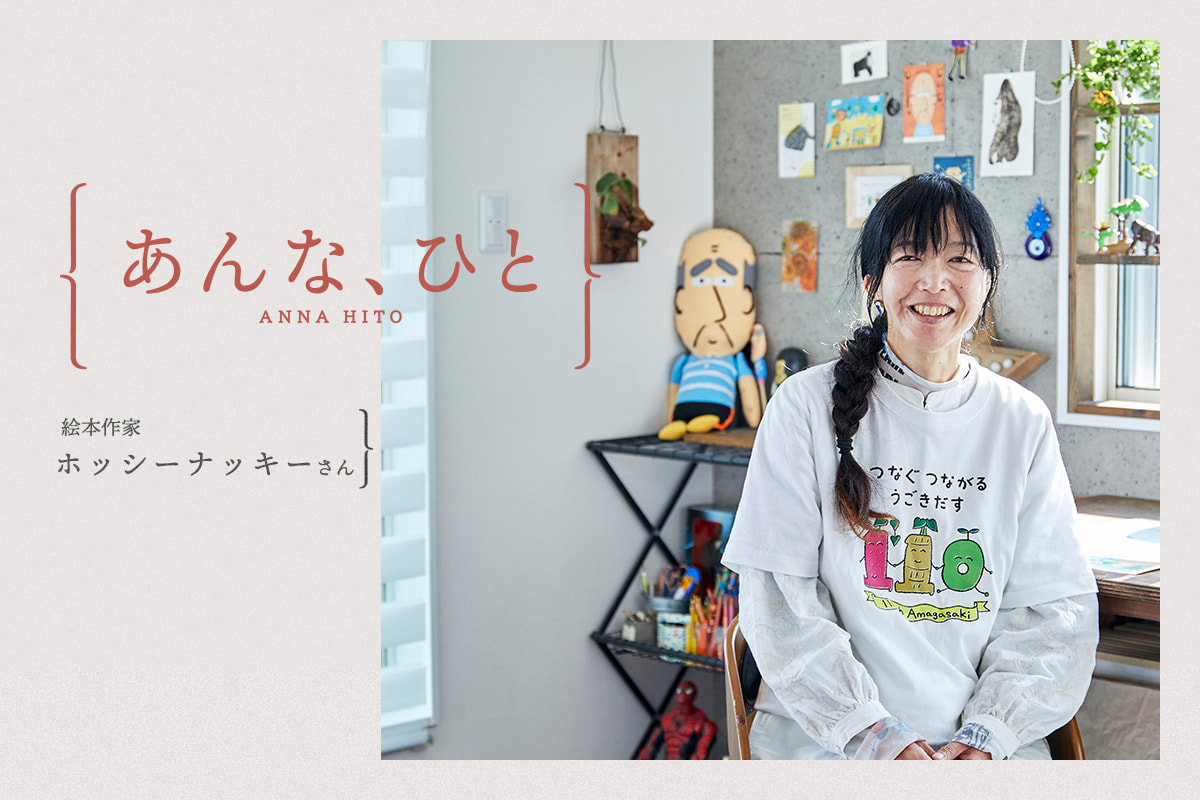 「あんなぁ」と、明日誰かに伝えたくなる人にスポットライトを当てて紹介する「anna」の連載企画「あんな、ひと」。2年ぶりに帰ってきた本連載の第10回目は、尼崎市で暮らす絵本作家・ホッシーナッキーさんにお話を伺いました。