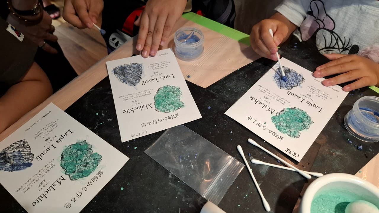 また、新設された「鉱物で作る岩絵具体験」にも注目。3種類の鉱物を実際にすり潰し、天然顔料として絵の具を作成後、その色を使ってオリジナルの塗り絵を仕上げるワークショップです。
