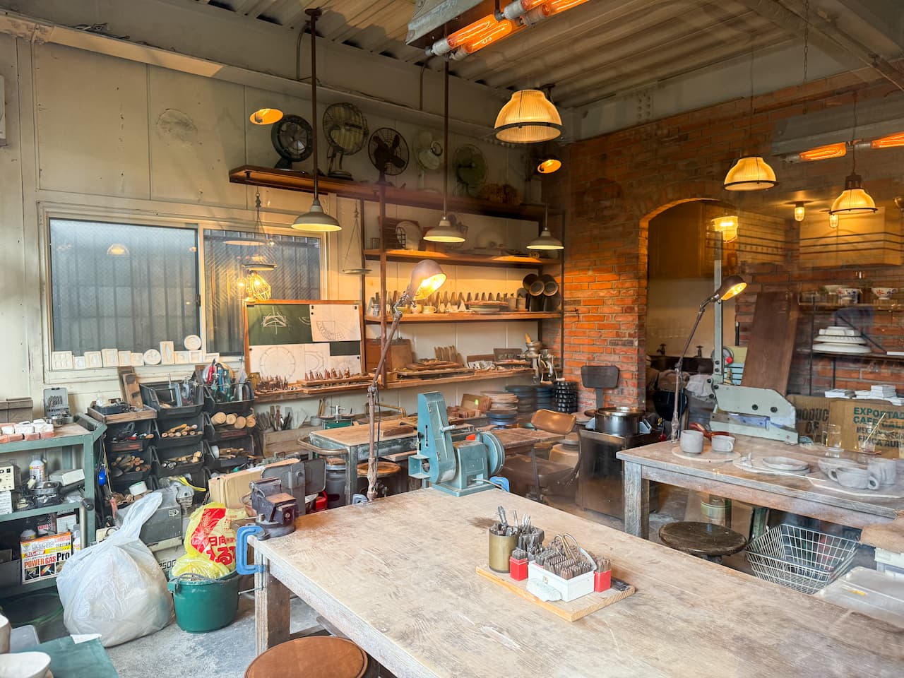 カフェのすぐ隣には工房があり、陶芸ワークショップは毎週日曜日、彫金ワークショップは毎週月曜日に開催されています。