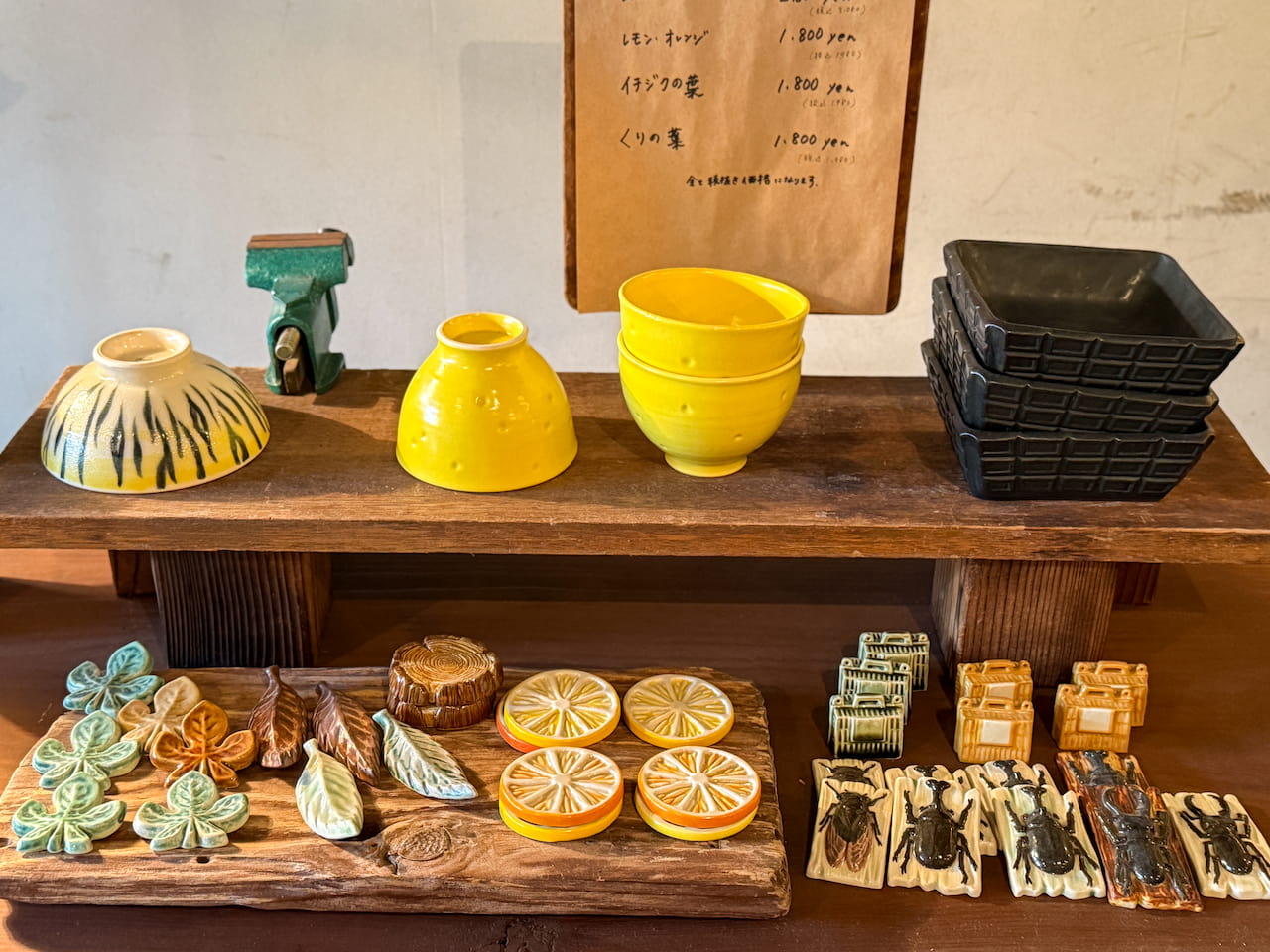 カフェで過ごしただけでも十分満たされましたが、工房をのぞくと陶芸教室のあたたかい空気が伝わってきて、「次は陶芸体験もしてみたい……!」と心が躍りました。まるでアトリエにいるかのような、緑に癒やされる心落ち着く空間。おいしいスイーツとともに、陶芸体験で自分だけの作品づくりを楽しんでみるのもおすすめです。