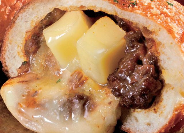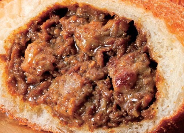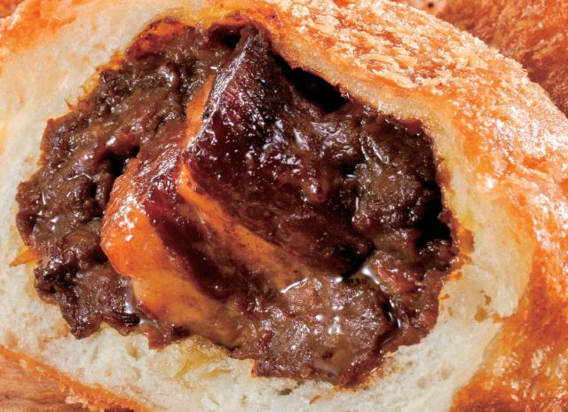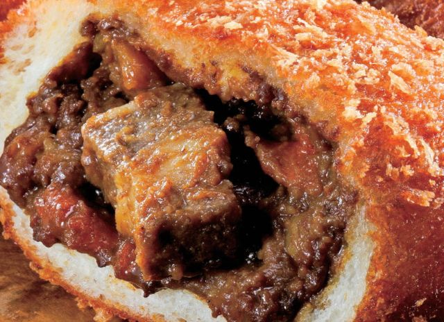じゃがいも、人参、牛肉の「ごろっと」した食感が特徴のカレールゥと、ルゥに負けない「ごろっと」大きな牛角煮を包んだ、これぞ王道ビーフカレーパン。醤油ベースでじっくり煮込んだ大ぶりな牛角煮の、柔らかくてジューシーなうまみがたまりません。