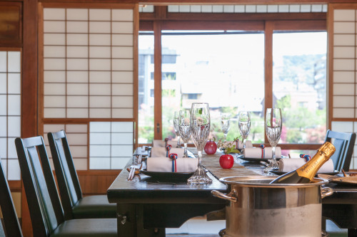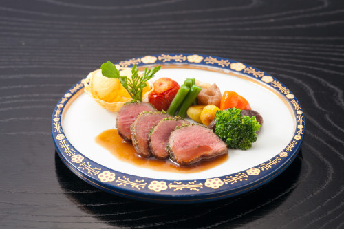 “フレンチ会席”と呼ばれる、お箸で食べるフレンチ料理が特徴です。さらに店内はお座敷で、和と仏が上品に融合した、老舗ならではの絶品料理を楽しむことができます。