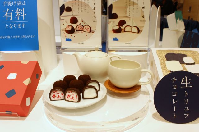 注目は、まろやかな生クリームを生チョコレートで包んだ、同ブランドの代表商品「スノーボール 黒」。今回のPOP UPでは定番の味に加え、2シーズン前にバレンタイン限定で登場したいちご味の「スノーボール 赤」が高島屋大阪店に初登場です。
