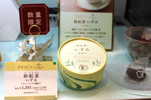 同ブランドのお菓子と相性の良い、「お茶の千代乃園」の希少品種「いずみ」の和紅茶も販売しています。ぜひ繊細な味わいのお菓子とのマリアージュを楽しんで。